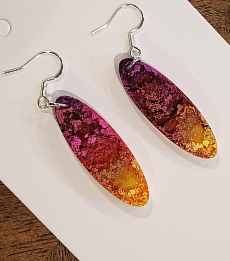 Beautiful earrings! .925 sterling silver. Made from Epoxy and alcohol inks. Each set is completely unique as I only have control of colors- not how it cures.
