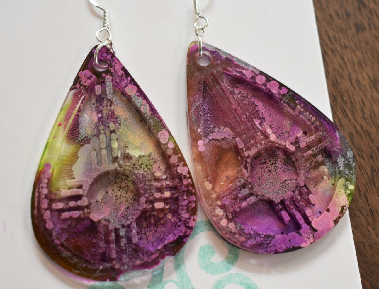 Beautiful zia earrings! .925 sterling silver. Made from Epoxy and alcohol inks. Each set is completely unique as I only have control of colors- not how it cures.